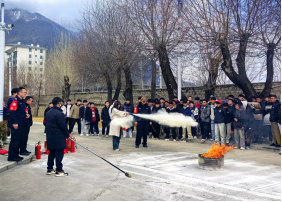 为使整个演练安全有序,取得实效,演练始终,学院高度重视,与团学干部共商演练计划;各班演练人员,积极配合,同学们按时到达指定地点。演练开始后,安保处工作人员,分别对灭火器、灭火布、防烟面具等消防用具、器材的分类和使用方法,以及通过实际案例对逃生中安全注意事项等方面进行了详细的讲解和演示;接着,部分学生代表进行了实操演练,其间安保处工作人员不时与同学们互动,并耐心指导和纠错,进一步增强了学生安全规范使用消防用具的能力。最后,普布次仁老师对演练活动进行了现场总结,感谢安保处工作人员的耐心指导和辛勤付出,以及团学干部的有力组织和同学们的积极参与;并希望同学们从“吃住行、水电火、毒疫渗”等各方面时刻高度重视和增强安全意识,通过演练和学习,提高应对各种风险的应变能力;并将学习成果,分享给身边的同学、朋友和家人,起到引导和辐射效应。