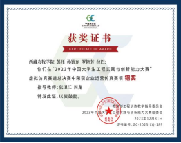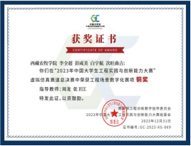 由教育部主办的2023年中国大学生工程实践与创新能力大赛总决赛11月24日首先在西北工业大学拉开帷幕。本次大赛吸引全国200余所高校的一万余名师生参赛。我校4个队由张卫江老师和周龙老师带队,分别在西北工业大学、山东大学、吉林大学参加国赛,在与全国两千多支国赛队伍的同台竞技中,太阳能电动车、智能物流搬运、工程场景数字化、企业运营仿真4项比赛均获国家铜奖,实现西藏农牧学院获得4项国家级奖项新的突破!