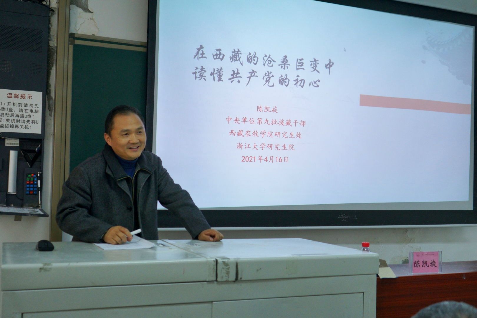 2021年恰中国共产党成立100周年。为深入学习贯彻落实习近平总书记在“党史学习教育大会”中的指导思想,回顾中国共产党的初心使命,扎实推进党史学习教育做深做实,从历史的横截面上回顾党史,做到重视历史、研究历史、借鉴历史。动物科学学院特于2021年4月16日在4105教室召开了动物科学学院党委党史学习教育专题讲座,中央单位第九批援藏干部、研究生处副处长陈凯旋做专题报告;报告由动物科学学院副院长孙磊主持;动物科学学院副书记、院长索朗斯珠,副院长刘锁珠及全体教工,学生党员、积极分子共计120余人参与此会。