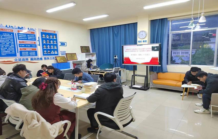 2023年4月27日晚上19:30研究生党支部在动物科学学院第一教学楼四楼开展学习贯彻习近平新时代中国特色社会主义思想主题教育党日活动,本次会议读书篇目为党的二十大报告和党章。
