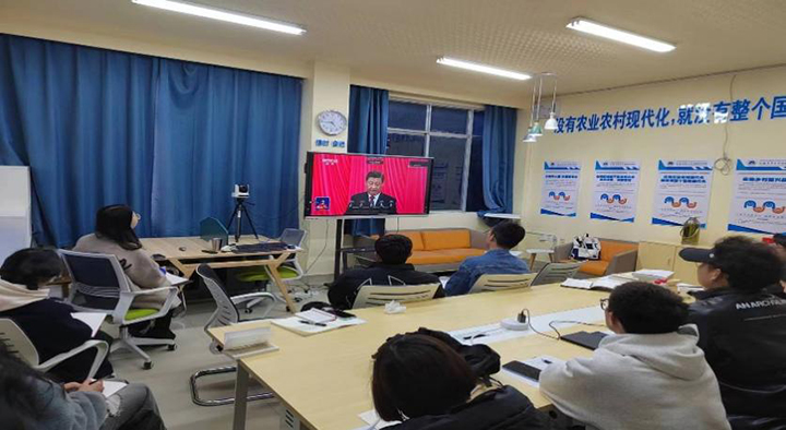 本次会议由研究生支部书记梁金辉主持,首先梁金辉同志对我支部学习贯彻习近平新时代中国特色社会主义思想进行简述,接着全体党员、预备党员、积极分子一同观看了党的二十大报告,同时各位党员对习近平新时代中国特色社会主义思想专题摘编进行自我学习。
