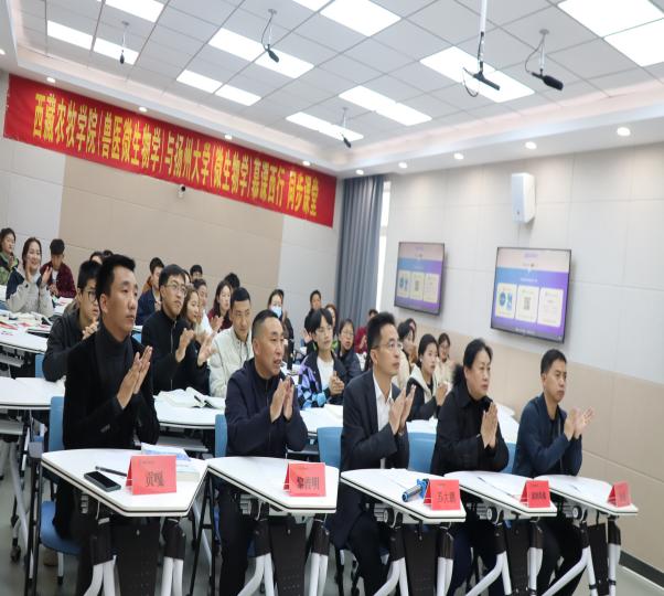 为深入学习贯彻习近平新时代中国特色社会主义思想主题教育,积极响应教育部“慕课西行2.0”号召,实现教育资源共享,6月17日上午,我校动物科学学院贡嘎副教授主讲的《兽医微生物学》与扬州大学焦新安教授主讲的《微生物学》“慕课西行同步课堂”在我校4401智慧教室开讲。上午9:00在4401智慧教室举行启动仪式,西藏农牧学院副书记苏大鹏、教学督导委员会主任黎普明、动物科学学院院长索朗斯珠、副院长孙磊和教师贡嘎参加启动仪式,我校苏大鹏副书记致辞。