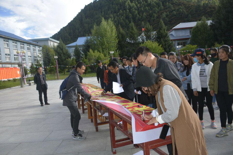 由动医第一党支部副书记茹一钊同学主持。首先,主持人发表开幕词,旦巴副书记发表讲话,他主要从以下四个方面讲到:一、我们要不忘初心跟党走;二、永远发扬老西藏精神;三、维护民族团结,维护社会稳定,坚决反对分裂;四、不忘党恩,铭记历史,珍惜现在的美好生活。然后,由旦巴副书记带领现场学生党员重温入党誓词,“我志愿加入中国共产党,拥护党的纲领,遵守党的章程……”学生党员的铿锵誓言表达了为党的事业奋斗毕生的坚定决心。最后,活动到了签字环节,各位党支部书记率先签字,学生党员随后依次签字,活动到此圆满结束。