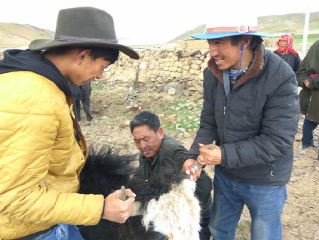 班戈县海拔4747米,我院专家组克服高原缺氧,在班戈县农牧局的积极配合下,采集绵羊血样200头份,牦牛血样54头份,试种优良牧草8种,其中“冬圈夏草”5亩,退化草地补播20亩,采集土样100余个,圆满完成了工作任务。