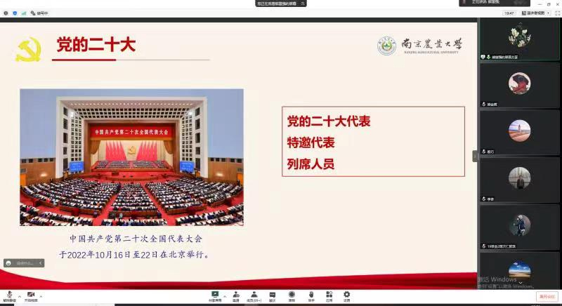 11月8日晚上,我院党委与科研处直属党支部以线上线下相结合的方式组织进行党的二十大精神联合学习会,会议邀请南京农业大学组织部副部长熊富强做了题为“踔厉奋发、勇毅前行,为全面推进中华民族伟大复兴而奋斗——二十大精神学习体会”的报告,科研处直属党支部全体成员,动科院全体教工、学生党员及积极分子参加学习,会议由动物科学学院副书记刘锁珠主持。