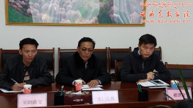 2017年5月8日下午,那曲地区班戈县县长次仁扎西,那曲地区副秘书长、班戈县县委常委、常务副县长褚洪金,农牧局副局长索朗曲交一行来我院洽谈校地合作。学院党委书记、副院长云丹加措,党委副书记、副院长王春春会见次仁扎西一行并就校地合作等相关事宜与次仁扎西一行展开友好洽谈。科研处副处长王元林,动物科学学院院长强巴央宗、副院长李家奎、副院长索朗斯珠、副院长孙磊、动科教研室主任刘锁柱等参加会议。