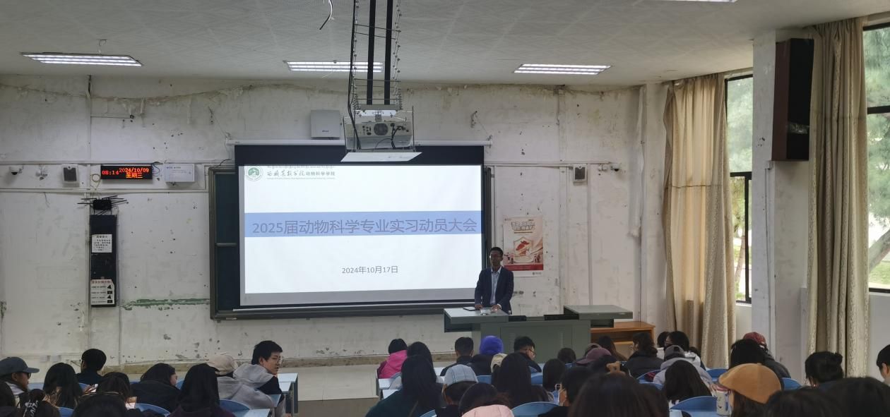 2024年10月17日,动物科学学院在第一教学楼1107教室召开了2025届动物科学专业实习动员大会。动物科学学院党委副书记石徐、副院长徐业芬出席会议,2025届动物科学专业全体毕业生、班主任、辅导员参加了会议。