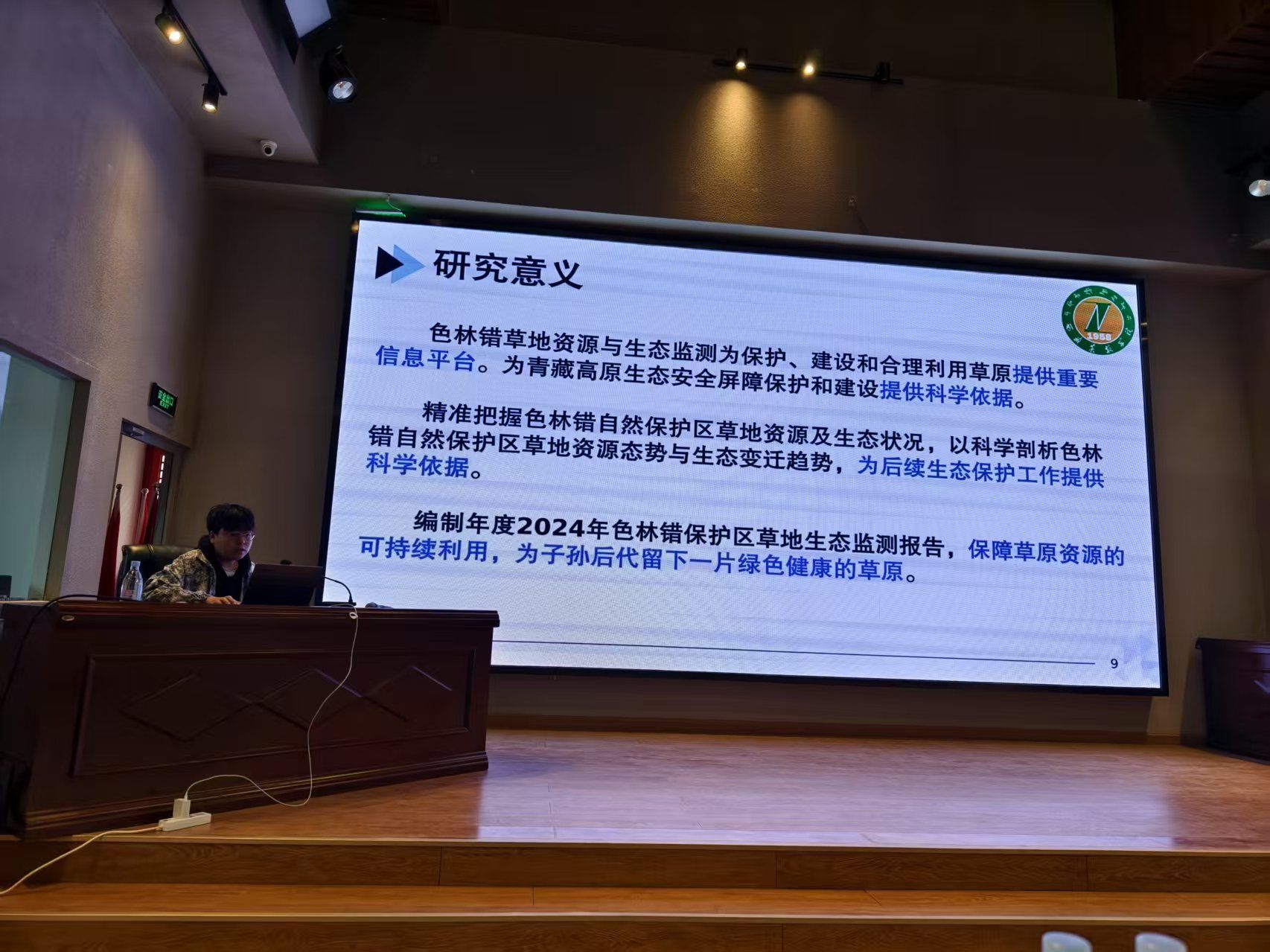 会上,学院代表团队展现了卓越的学术风采,2名研究生分别把自身的研究成果在会上进行汇报与交流。他们的报告紧密贴合会议主题,内容涵盖对西藏自然保护区资源与生态监测研究、围封年限对藏北高寒草原植物多样性及生产力的影响、特色草种资源挖掘利用、草业生态修复技术创新实践等,凭借扎实的研究基础、清晰的逻辑阐述,展示了我院草学研究生扎实的理论功底和严谨的学术作风。