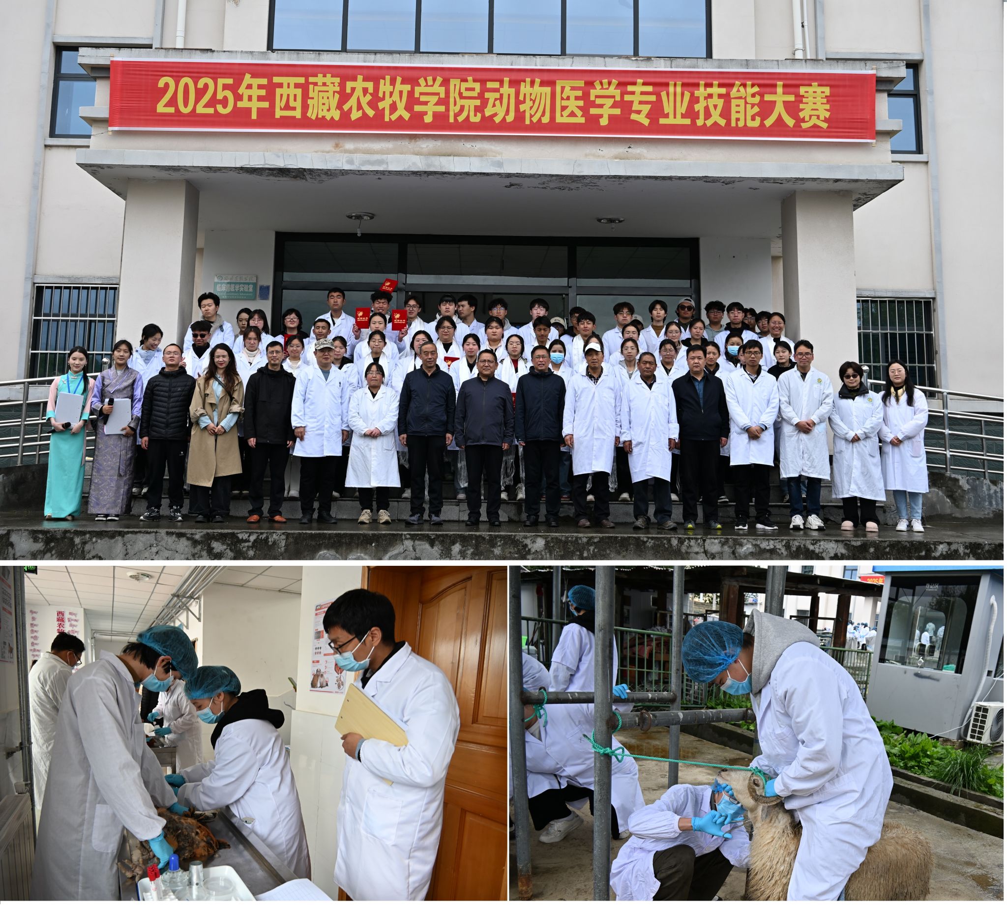作为动物科学学院的传统特色赛事,专业技能大赛每年举办一次,已成为学院实践教学的重要品牌。大赛以“以赛促学、以赛促教”为目标,深化“教、学、做”一体化教学模式,推动实践教学体系优化及师生能力提升。西藏地处高原,气候条件复杂多变,即便面临恶劣天气,师生仍坚持参赛,体现了对专业实践的重视和迎难而上的精神。这种态度与农牧行业从业者常需克服自然条件挑战的现实相呼应,培养学生“不畏艰苦、扎根一线”的职业素养。
