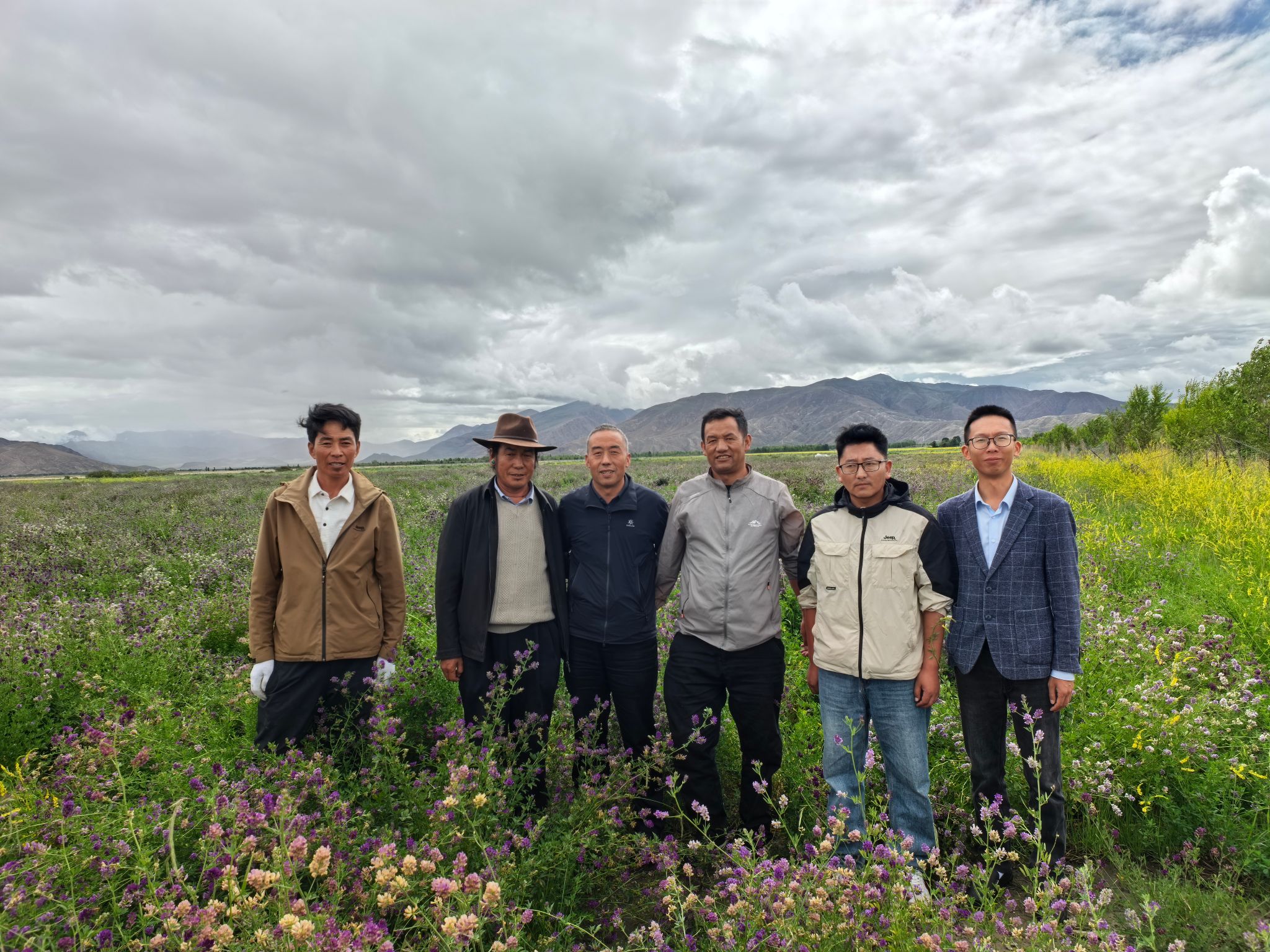 随后,团队成员深入3000亩苜蓿种植田和当地万亩油菜田,对饲草作物及油料作物的生长状况、田间管理、开发利用等环节进行了全面考察。