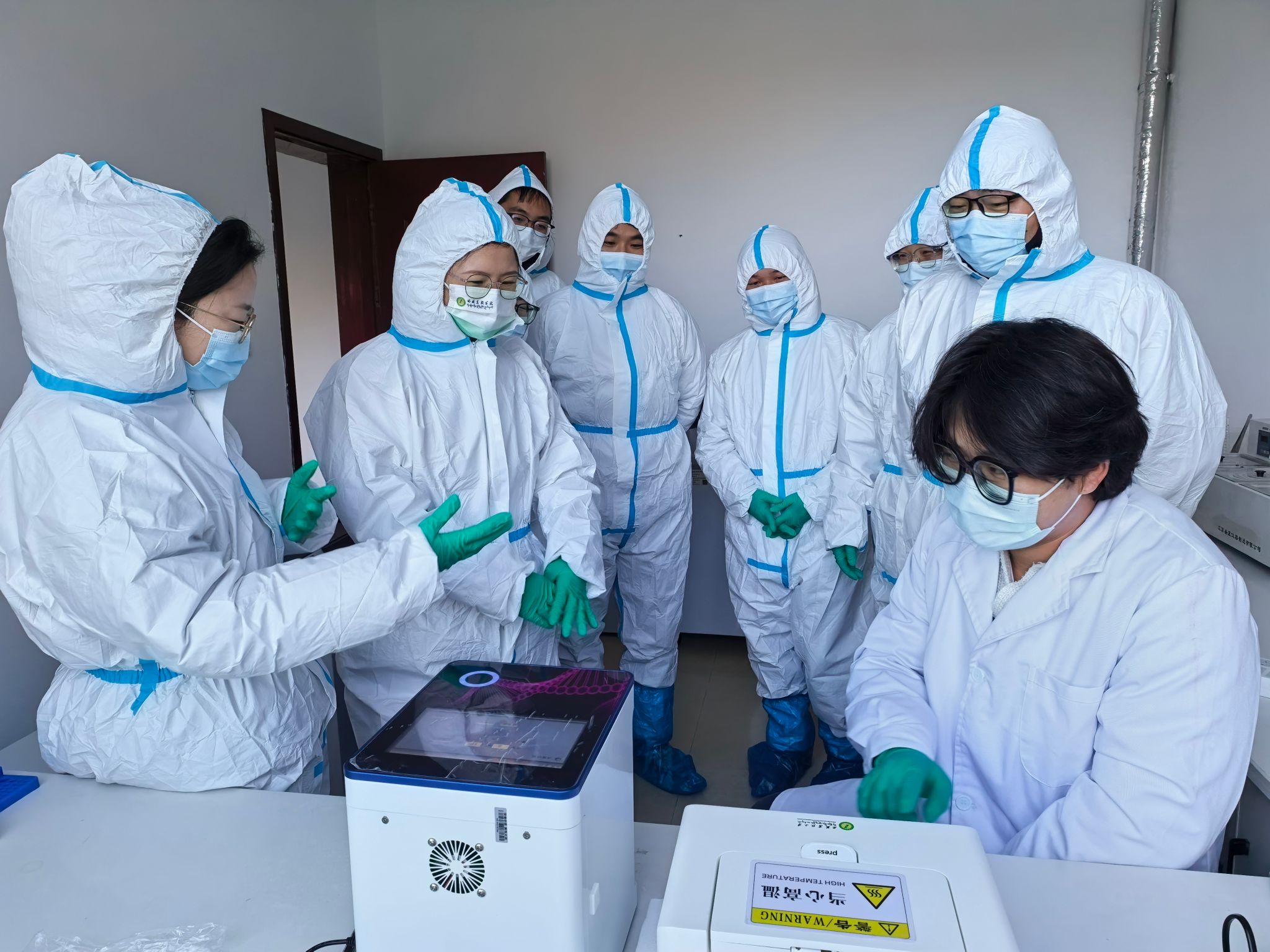 培训过程中,研究团队采用“理论讲解+实操演示”相结合的方式,为基地技术人员系统讲解了疫病防控知识,并逐步演示了从样本采集、核酸自动提取到PCR检测分析的全流程。重点展示了便携式移动PCR仪在野外环境中的稳定运行能力,以及快检试剂盒的简便操作与快速判读特点。