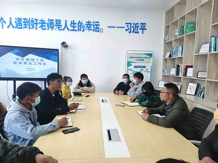 2022年4月6日,动物科学学院召开学生教育管理工作征求意见会,2名班主任老师代表、12名本专科生代表、4名研究生代表及学院辅导员参加会议。会议由动物科学学院党委副书记、副院长熊富强主持。