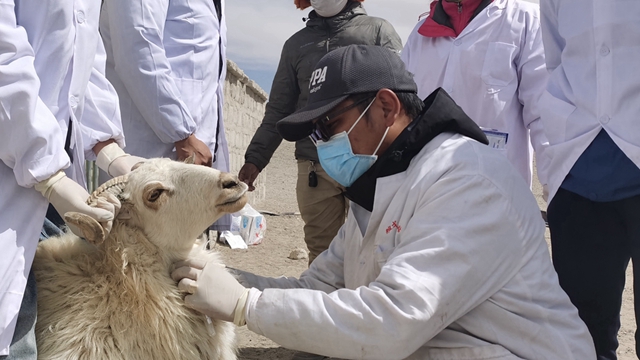 在马前乡色瓦绵羊养殖合作社,专家团队调查了色瓦绵羊放牧草场主要牧草资源利用现状,采集了典型色瓦绵羊种群血液样品,共同谋划通过《班戈县色瓦绵羊良种选育及高效养殖技术体系研究》科研项目的实施,更好地推动当地色瓦绵羊养殖合作社的发展。