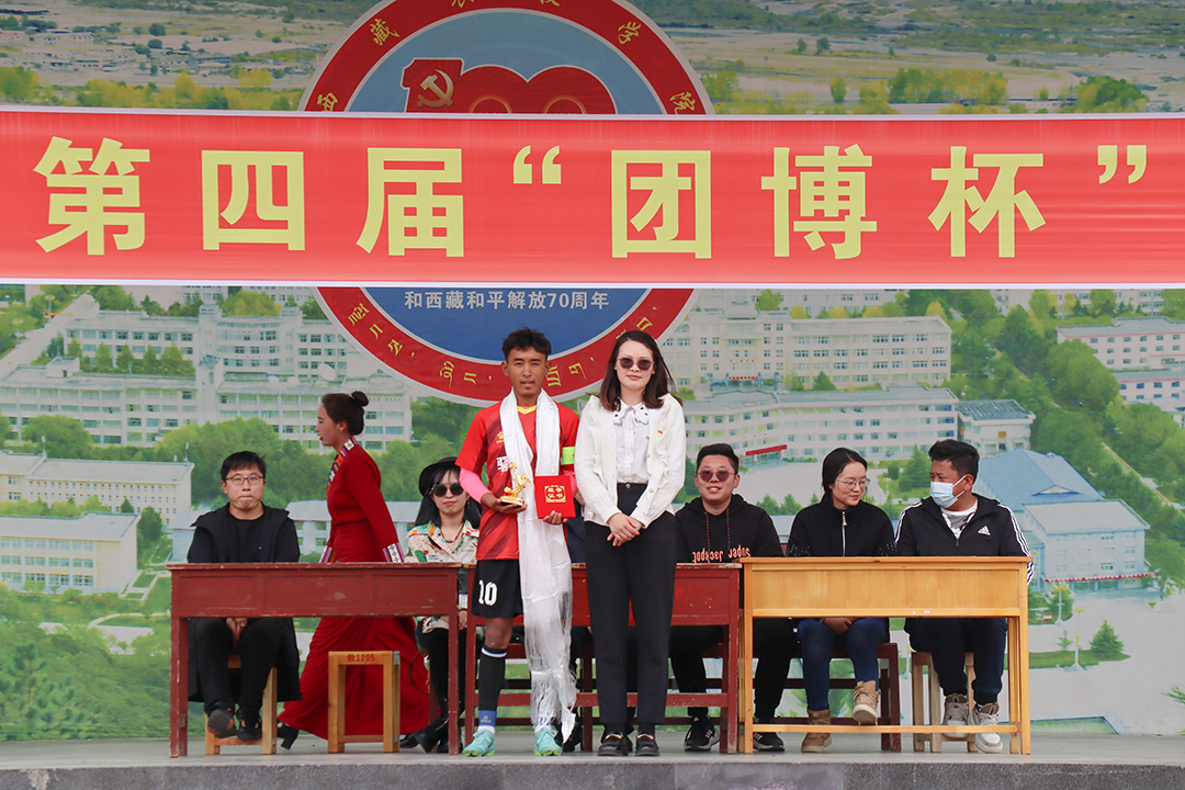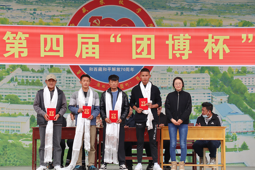 伴随着文艺部精彩的开场歌曲,”团博杯”第四届足球联赛闭幕式拉开帷幕,首先为本次比赛最佳裁判、选手、守门员颁奖并拍照留念。随后,由熊富强书记、姚梦婕老师、土旦次仁老师分别为冠军动物科学2019级本科二班、亚军草业科学2018级本科二班、季军动物医学2020级本科班颁发奖项。最后,由王浩然老师做了精彩的闭幕致辞,对本次联赛活动给予了高度评价:”本次足球联赛赛出了水平,赛出了风采,希望通过本次联赛可以让更多的学生了解足球并且喜欢足球。从足球起飞,辐射艺术、写作、绘画等领域,做一个特色引领,全面发展的阳光青年。”