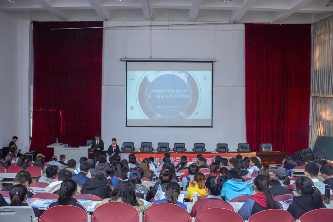 随着全国高校的扩招及近几年经济发展的状况,高校大学毕业生的就业形势日趋严峻,就业竞争的压力日益增大。为引导大学生形成正确的就业观,树立正确的择业观,更好的融入社会。同时深入落实《关于西藏高校毕业生稳就业若干措施的实施意见》的政策。动物科学学院于2020年9月18日15:30在第一教学楼3楼会议室召开了校企招聘洽谈会。出席本次会议的有学招生就业处处长薛涛,党委副书记旦巴,科研室主任吴庆侠、谭占坤、王明涛,辅助就业辅导员宗巴;食品科学学院院长肖振红,党委副书记索朗才旺,辅导员巩雪梅及正邦集团南昌总公司负责人曹丽,桂林力源集团董事、人力资源部总监黄大鹏等八位企业代表。