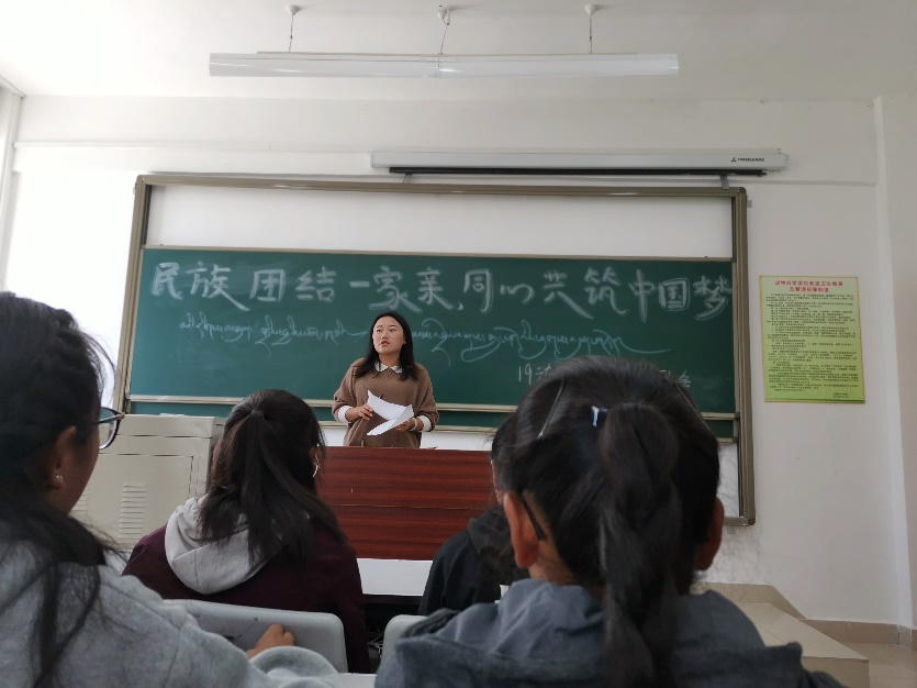 本次活动,各班班委围绕民族团结对在场学生提出了当代大学生应当具有符合社会主义核心价值观的民族观以及积极向上的人生观的要求。随后团支书阐述民族团结的重要性并组织在场学生上台分享自己对民族团结和自身发展的认识,在场学生积极互动,各班班会现场气氛活跃,学生反应强烈。其中,19级动科三班的班会形式更是丰富多彩。共四项议程,开场由班主任发言弘扬爱国主义和民族团结,随后班主任助理发言提出对学生的要求,紧接着由学生以宿舍为单位表演与爱国有关的节目。其中包括独唱《歌唱祖国》,合唱《团结就是力量》、《我相信》、《幸福的藏家人》,相声《爱我中华》等,区内同学还为区外同学翻译歌词。最后,班主任总结此次会议并做出鼓励与批评。