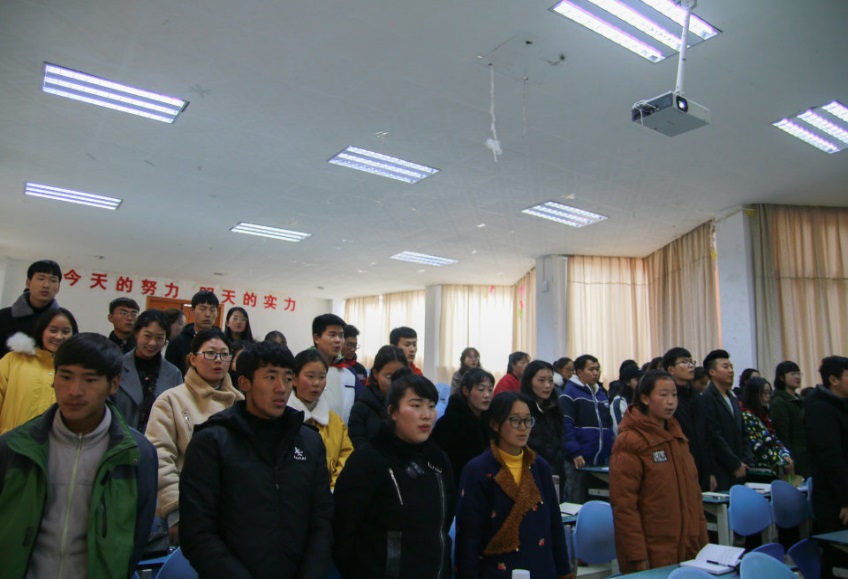 本次开班仪式由草业科学学生党支部书记罗晓莉同志主持,出席开班仪式的领导及老师有:西藏农牧学院党委宣传部部长巴桑次仁、动物科学学院党委副书记旦巴、动物科学学生党支部书记殷巧、动物医学学生第二党支部书记宗巴、学生科辅导员宋健。
