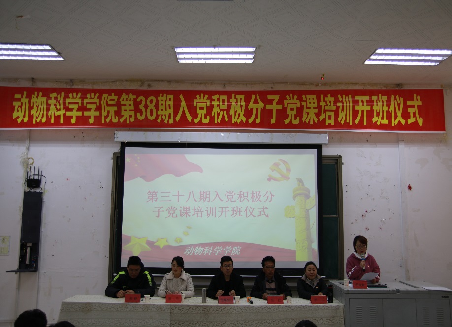 为全面深入贯彻学习“两会”精神,落实“两学一做”的学习要求,加强我院第三十八期入党积极分子党性意识、政治意识、纪律意识。动物科学学院于2019年3月23日下午15:30在第一教学楼107教室举行第三十八期入党积极分子党课培训开班仪式暨培训第一讲,培训共52名入党积极分子参加。