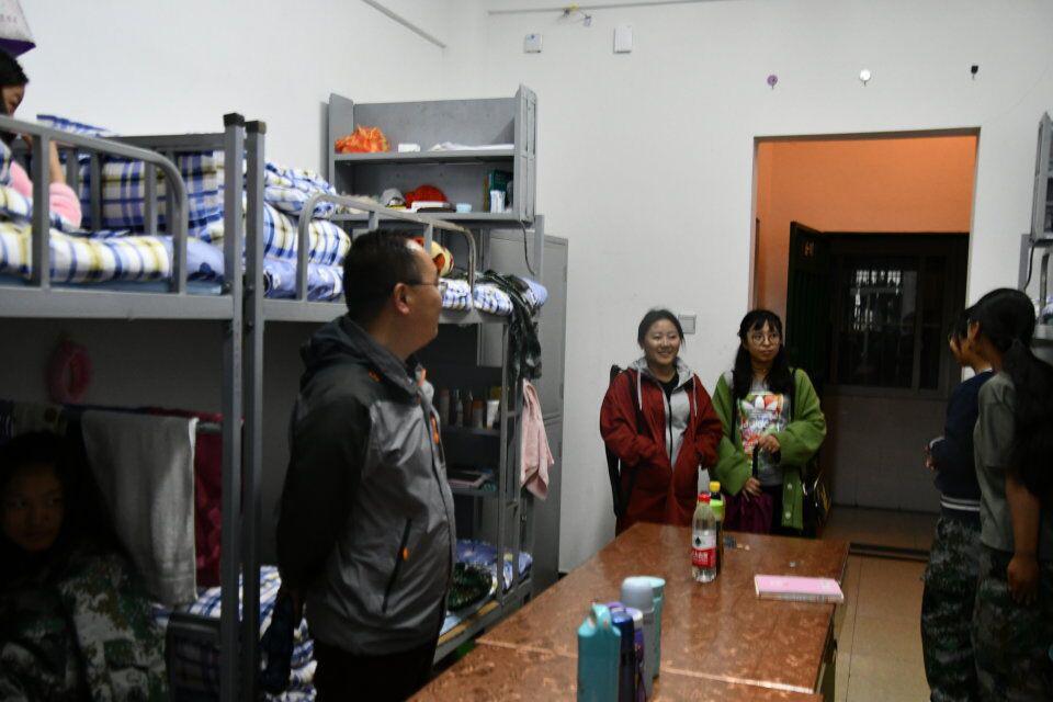 在宿舍中,我院领导老师与学生亲切交谈,详细询问了学生的军训情况。赵书记更是对地震中家里受灾、军训期间生病的同学格外重视,赵书记详细了解了他们的情况并叮嘱他们在学校要放宽心、早晚注意保暖。书记强调:在宿舍中,要提高安全意识,注意用电安全、防火防盗。对于汉藏混合宿舍,赵书记更是强调民族团结的重要性。学生们认真聆听着赵书记的教导并不时与各位老师交谈着,宿舍氛围十分融洽。