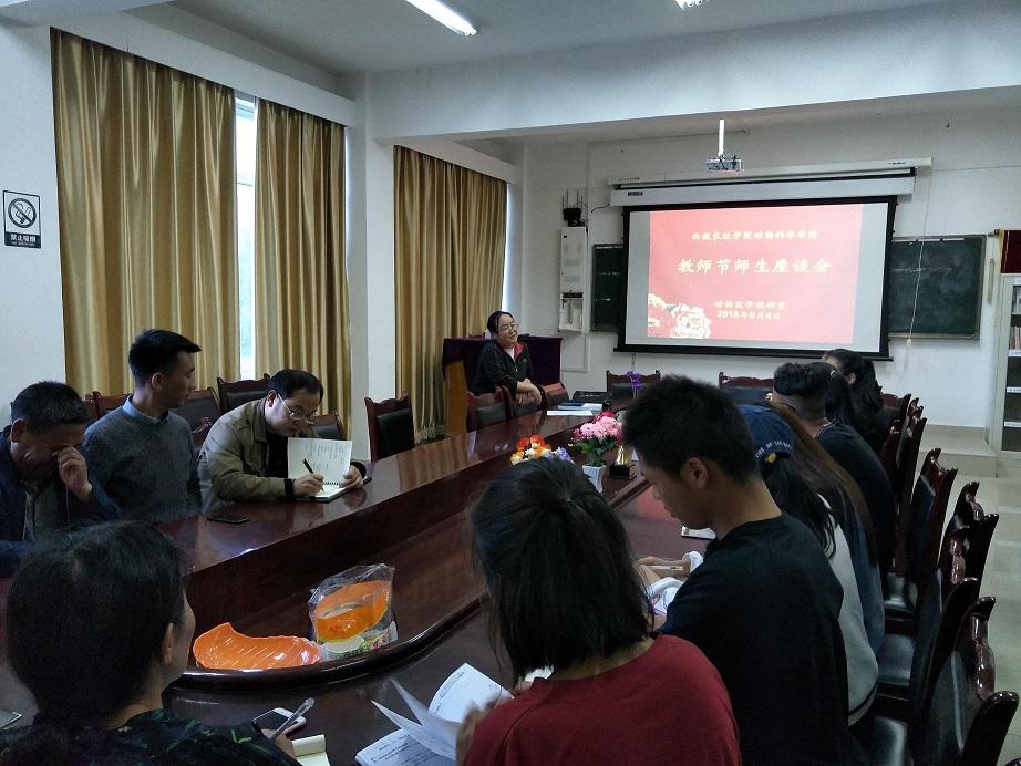 动物医学教研室于2018年9月4日晚在动科院3楼会议室召开了庆祝第34个中秋节的师生座谈会。参会老师有动医教师的部分老师和动物医学、动植物检疫、动检专各个班级的班委同学们。在会上,吴庆侠老师谈了师德师风在教书育人中的重要性;董海龙教师谈了当班主任这么多年的心得体会;巴平老师谈了多年班主任,如今桃李满天下的满足和幸福;学生们也谈了对老师的祝福。