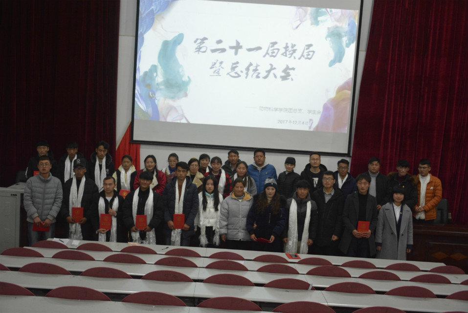动物科学学院本年度学生会工作即将结束,为推动我院学生会工作更好更强更长久的发展,保证团总支学生会在新旧成员交接后能够更快的正常运转。 2017年12月04日动物科学学院在全团总支学生会范围内召开了2017~2018年度第二十一届团总支学生会换届暨总结大会。我院学生科科长普旺堆,团总支书记姚梦婕,学生科辅导员宗巴、殷巧、土旦次仁、靳亚杰,前任学生会主席次曲、团总支副书记张建宏以及现团总支学生会全体人员参加了此次会议。