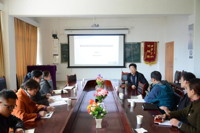 2017年10月24日,南京农业大学动物科学技术学院院长刘红林教授、动物医学院杨德吉教授一行到我院考察指导工作并进行学术交流。我院强巴央宗院长、李家奎副院长、索朗斯珠副院长和动科教研室、动医教研室无课的教师和研究生参加了此次座谈和学术交流会。会上首先由动科院院长强巴央宗教授介绍参会人员和我院基本情况。其次,南京农业大学动物科学技术学院院长刘红林教授、动物医学院杨德吉教授分别就南农动物科学技术学院人才培养、师资队伍、学科建设、科学研究进展、发表论文、学生实践能力提升工作做了详细的交流。最后,南京农业大学动物科学技术学院刘红林教授做了题为《氧化应激对动物繁殖的影响及机制》的精彩学术报告,报告围绕着动物分子育种、动物繁殖性状的调控、氧化应激对动物繁殖的影响及机制、采用候选基因法寻找影响猪重要经济性状的分子标记、猪经济性状的遗传分析等研究进行了精彩汇报,并针对藏猪的繁殖技术,提出了几点创新性意见。参加会议的老师和研究生与刘红林教授在学术上进行了深入讨论。通过此次交流,对动科院在人才培养和科研合作方面又提供了一个新的平台。