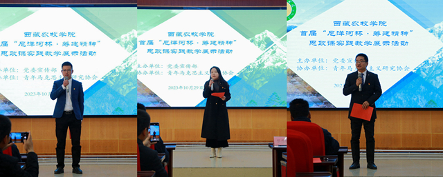65载沧桑砥砺,同舟共济创辉煌;65载春华秋实,硕果累累谱新篇。为深入学习贯彻习近平文化思想,弘扬传承“筹建精神”,激发学生涵养爱校荣校情感、厚植爱国兴藏情怀,10月29日,首届“尼洋河杯·筹建精神”思政课实践教学展示活动决赛在研究生苑报告厅成功举办。本次活动由校党委宣传部主办、青年马克思主义研究协会协办,校党委委员、宣传部部长达娃次仁、教学督导委员会主任黎普明、学工处副处长杨建军、思政教研室教授贺贤春出席并担任评委,“习近平新时代中国特色社会主义思想概论”任课教师、2023级本科生代表观看了比赛。