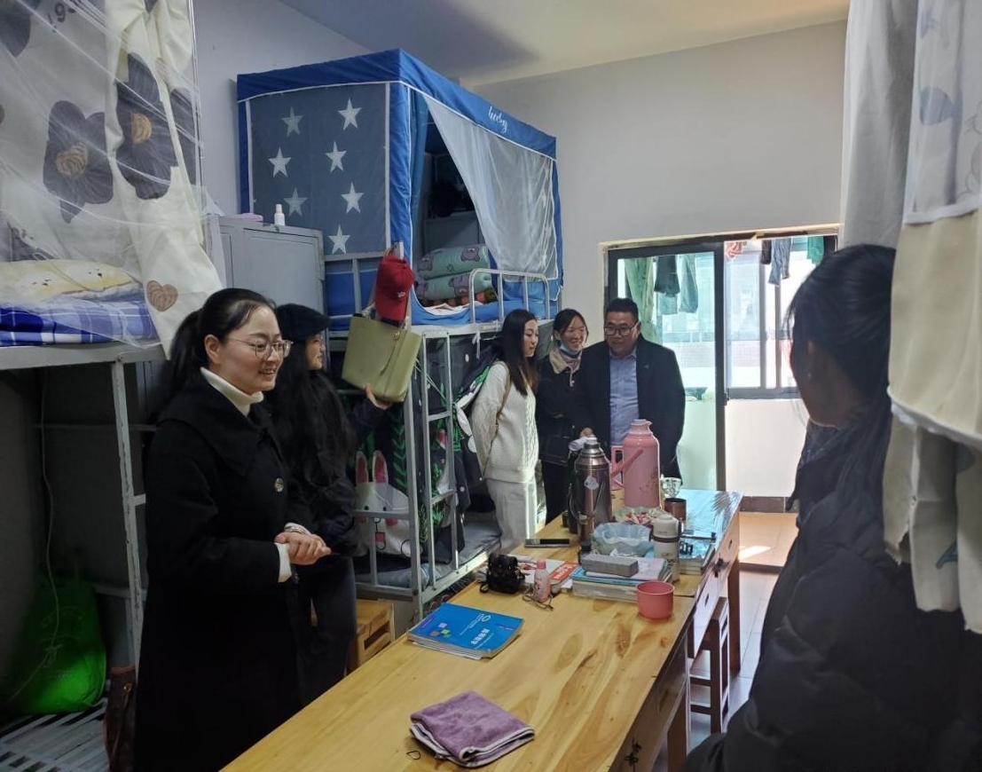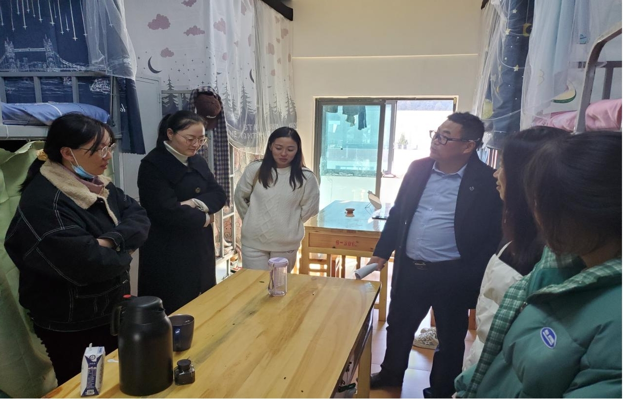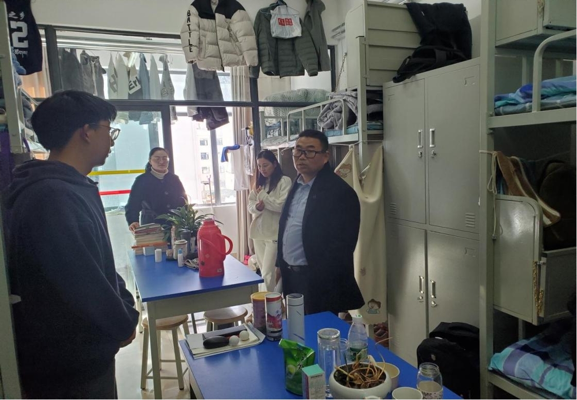 为响应教育厅会议及学校党委工作要求,进一步提升稳定安全意识,积极开展安全大排查大整治,公共教学部贺玺浦书记与班主任李婉如、王婷婷、罗珊,辅导员蔡重振深入开展宿舍安全卫生整治行动,对学生宿舍中的管制刀,宿舍消防、水电,窗户限位器等各类安全隐患进行排查。保证学生安全工作全覆盖、无死角、无盲区。