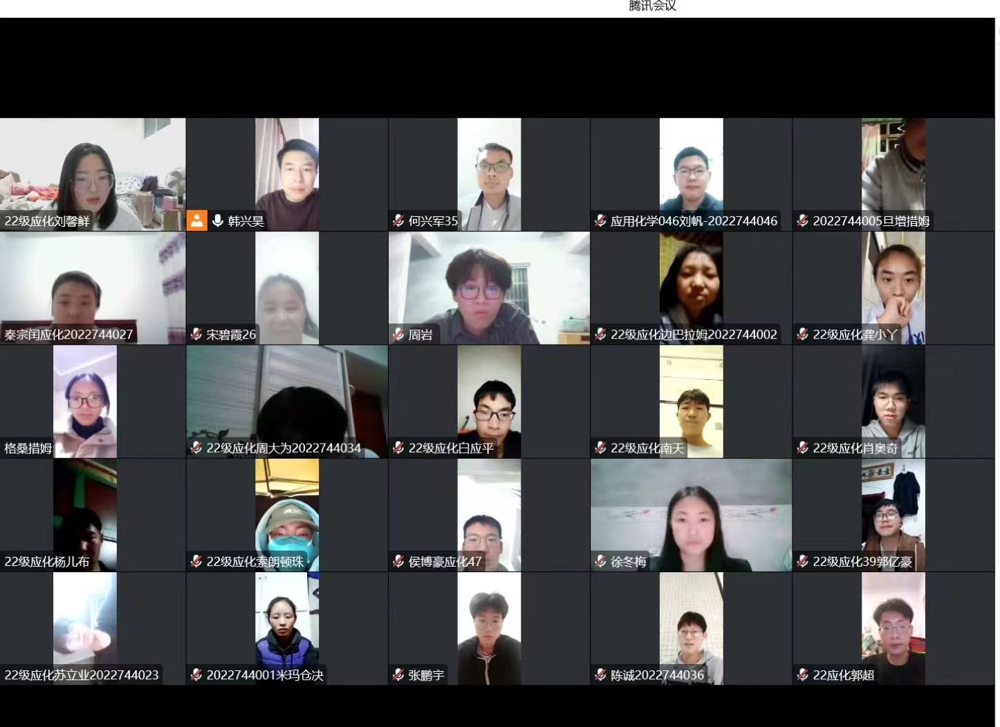 2022年10月24日晚,公共教学部应用化学专业线上召开学习二十大主题班会,2022级应用化学全体新生参加了此次会议。