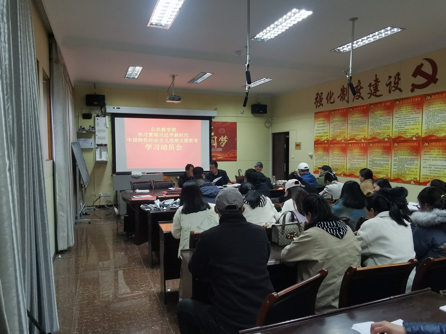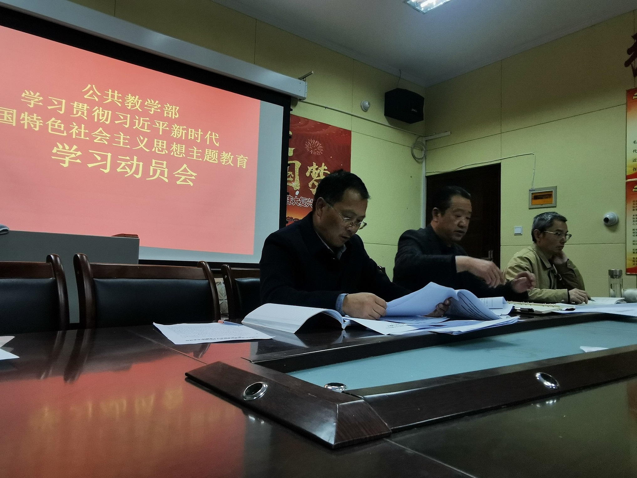 4月24日晚,公共教学部党委组织召开学习贯彻习近平新时代中国特色社会主义思想主题教育学习动员会,部党委班子成员、全体党员参加了会议。会议由部党委书记衡思泉主持。