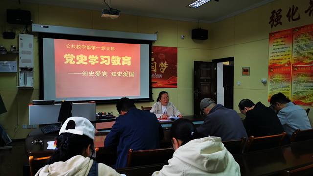 2021年5月20日上午,公共教学部第一党支部在公共教学部会议室组织支部全体党员开展党史学习教育活动。
