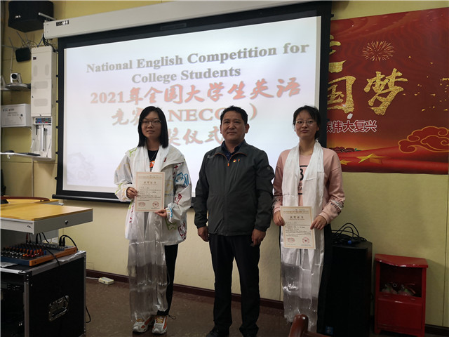 教务处处长米玛顿珠、公共教学部书党委记衡思泉、公共教学部主任杨玉田分别为获得全国特等奖、全国一等奖、全国二等奖、全国三等奖和校级一二三等奖以及优秀奖的同学颁发获奖证书。学校副院长郑维列对获奖的同学和指导教师表示亲切的慰问并合影留念,