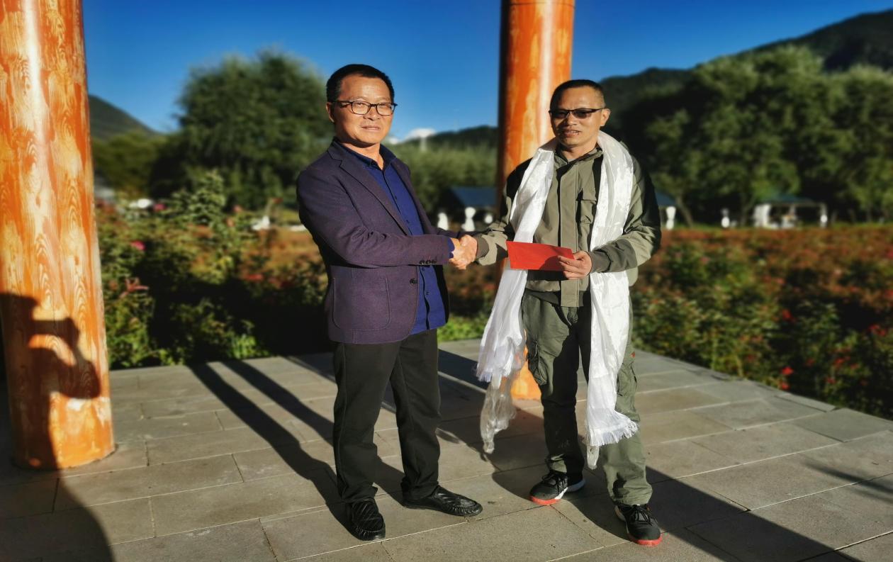 本次活动由韩兴昊老师主持,活动一改以往形式,组织教研室教师离开办公室,来到工布花谷公园。让大家走进大自然,感受自然的同时也作为一次游学,把会议延伸到自然之中,让大家在美丽的景色中团结合作,共同交流。教研室首先欢送退休的韩兴年老师,杨玉田主任代表公共教学部为韩老师送上了礼物和哈达,并祝愿韩老师退休生活愉快。大家也纷纷向韩老师表达了祝福。