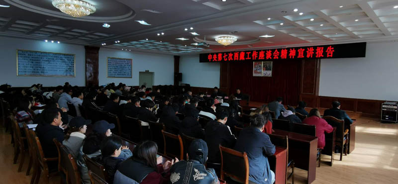 学校党委书记云旦加措以“永远感党恩、自觉听党话、坚定跟党走”为主题,从五个大的方面为我们作了一场学习中央第七次西藏工作座谈会精神的精彩宣讲报告。