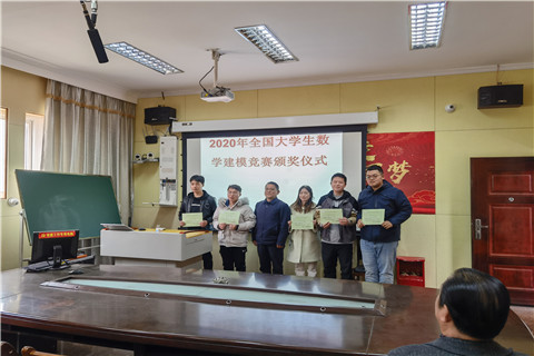 在这春暖花开,万物复苏的季节,我校参加2020年全国大学生数学建模竞赛的学生收到了期盼已久的获奖证书。该竞赛是教务处主办,公共教学部承办,数学建模指导组具体组织学生报名、培训和组织参加竞赛。3月17日上午在公共教学部会议室举办了颁奖仪式,教务处米玛顿珠处长、公共教学部衡思泉书记、公共教学部数学教研室敬久旺主任分别为获西藏赛区一等奖的2个参赛队,二等奖的3个参赛队,成功参赛奖的3个参赛队颁发了获奖证书。