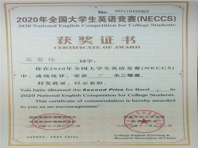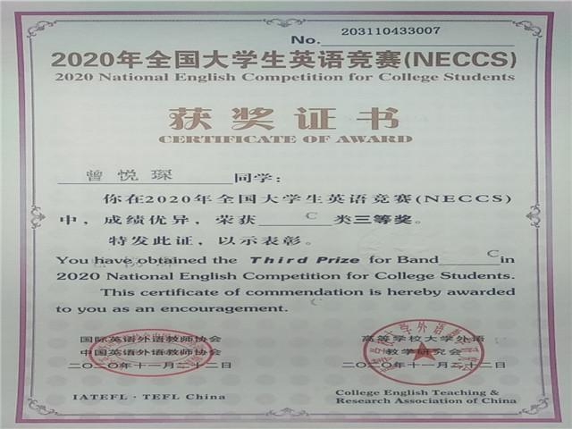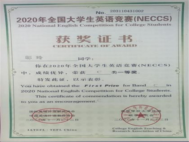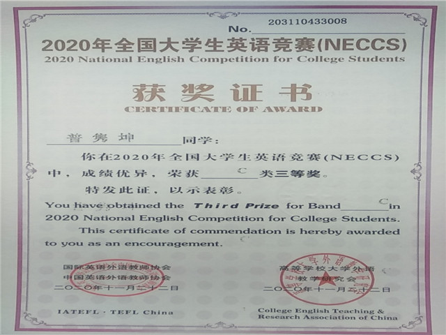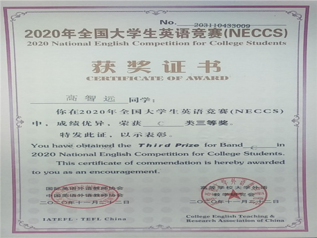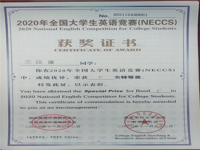 我校学生在全国大学生英语竞赛(NECCS)全国总决赛中喜获佳绩