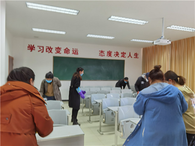 活动主要是针对第四教学楼5楼的4间教室进行卫生清理活动,教室是教师上课和学生活动的处所,由于个别学生的不自觉,在课桌、地板上乱写乱画、吃泡泡糖,造成课桌地板脏、乱、差,全体师生党员发扬艰苦奋斗、无私奉献、一切为了学生的精神,不怕脏、不怕累、不顾84消毒液刺鼻、腐蚀的味道,拿起抹布、喷壶、铲子和拖把,埋头苦干认真仔细地对课桌、地面、黑板槽污迹进行了无死角的彻底清理,最终使每一间教室焕然一新,为师生提供了干净的教与学的环境。