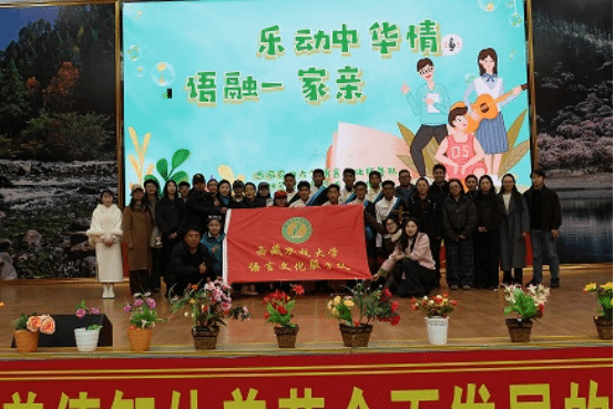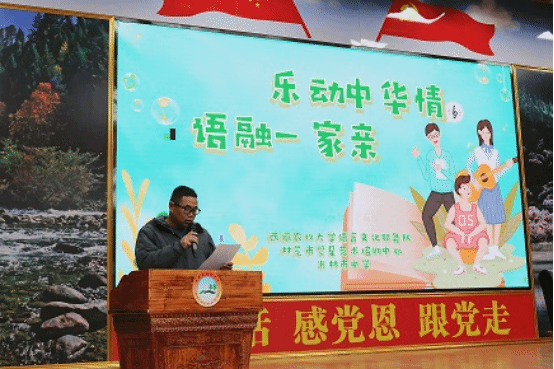 活动最后阶段,以语融亲。为使学生们认识到语言文化的意义,通过语言知识竞赛引发学生共鸣。学生们踊跃抢答,现场气氛紧张热烈。最后,本校马克思主义学院思政教研室朱娅教授以铸牢中华民族共同体意识为核心对学生进行谆谆教导;服务队主策划贾海娥老师以语言文化为媒介,教导学生学好语言与文化,并带领全体师生共唱《歌唱祖国》,再次将活动氛围推向高潮,全体师生自信歌唱。活动在欢声笑语中圆满结束,全体人员合影留念,定格了这一和谐难忘的瞬间,生动诠释了“语融一家亲”的深厚情谊。
