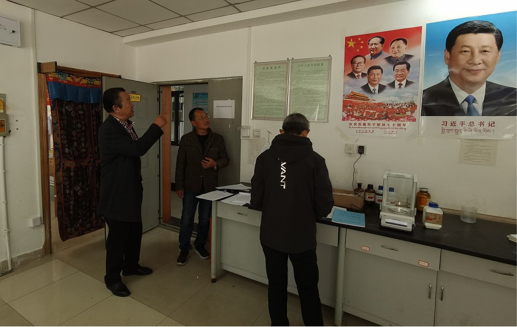 公共教学部部领导先后来到基础化学实验室、应用化学专业实验室,对实验室的消防安全、实验安全、用电安全、药品仓储管理、仪器设备安全管理等落实情况进行了检查指导,重点检查了实验室危化药品使用登记台账、实验开展情况登记台账、实验室安全责任制度等上墙情况,并和实验室负责人进行了座谈交流。