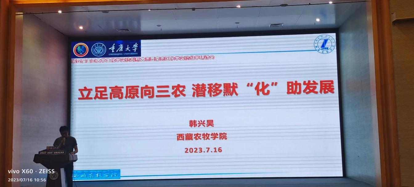 比赛期间还举行了化学实验教学研讨会,来自全国九所高校的专家围绕大学化学实验课程、教学改革、实践能力培养等方面同参赛院校老师同学们进行报告交流。我校韩兴昊老师受邀向大会作了题为“立足高原向三农 潜移默‘化’助发展”的报告。