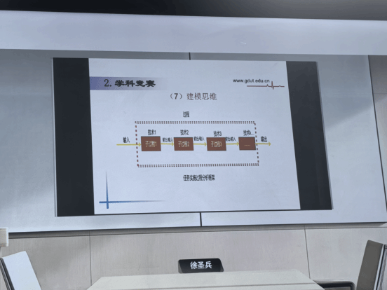 在数学建模思维的实操讲解环节,徐老师以“CT 系统参数标定与成像”赛题为例,借助流程图、框架图等可视化工具,细致拆解建模过程中的任务分析、方案设计、实践实施等关键环节,让抽象的建模逻辑变得直观易懂,帮助师生掌握“从问题到方案”的科学思考方法。同时,他特别强调赛后成果深化的重要性,通过分享学生基于竞赛赛题进一步探究、最终发表学术论文的案例,展现了数学建模竞赛对学术研究能力的助推作用。