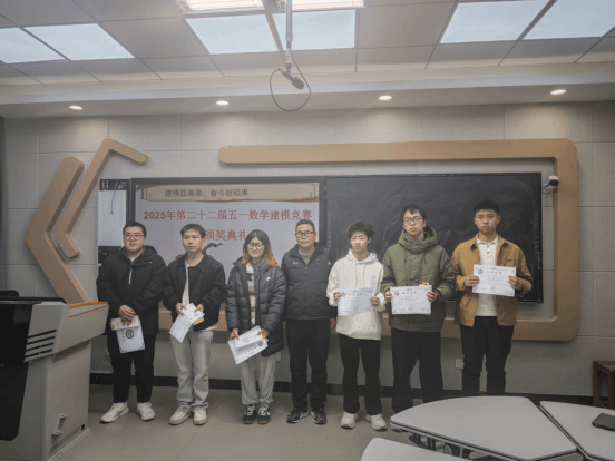 贺玺浦副主任与敬久旺老师共同为获奖同学颁发了证书。本年是我校第二届组织参加五一数学建模竞赛,取得了可喜的突破。全校4支队伍脱颖而出,其中2支队伍荣获全国三等奖,2支队伍获得成功参赛奖,充分展示了我校学子扎实的数理基础、创新思维和解决实际问题的综合能力。
