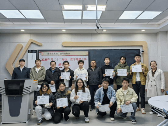 为了总结参赛经验,表彰获奖学子,进一步推动我校数学建模教学与实践活动的深入开展,10月23日下午,在4301教室举行了2025年第二十二届五一数学建模竞赛总结大会与颁奖典礼。本次赛事由教务处主办,马克思主义学院(公共教学部)承办。会议由数学教研室刘秀丽老师主持,马克思主义学院(公共教学部)贺玺浦副主任出席会议,指导教师敬久旺等老师及全体12名获奖同学参加了会议。