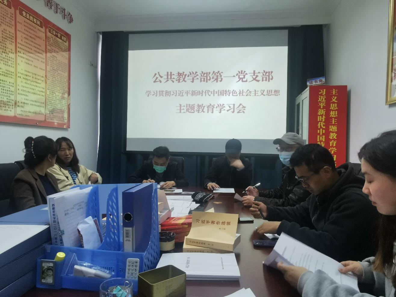 会议组织支部党员认真学习了习近平总书记在学习贯彻党的二十大精神研讨会开班式上的讲话精神、党的领导与中国式现代化等内容。学习结束后,支部党员同志们结合本职工作,开展了专题研讨。此次学习研讨会是公共教学部第一党支部主题教育系列活动之一。公共教学部第一党支部将按照学校党委和部党委的指示精神,以及既定学习方案,继续开展主题教学相关活动,以高度政治责任感和求真务实作风,推动主题教育取得实实在在的效果。