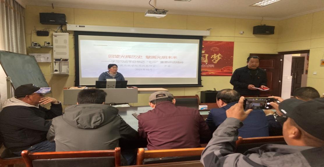 为持续深化党史学习教育活动,认真学习贯彻落实习近平总书记“七一”重要讲话精神,公共教学部于年10月8日举办了习近平总书记“七一”重要讲话精神宣讲学习会,学习会由部党委书记衡思泉主持,学院思政教研室齐霜老师宣讲,全体无课教师参加了学习会。
