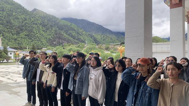 宣誓仪式由我部第二党支部党员平措同志领誓,全体党员教师和学生党员面对鲜红的党旗,高举右手庄严宣誓。通过重温入党誓词,使全体师生党员回忆了入党时的满腔激情和崇高追求,回忆了入党宣誓时的庄严承诺和坚定决心,切实增强了自身的责任感和使命意识。