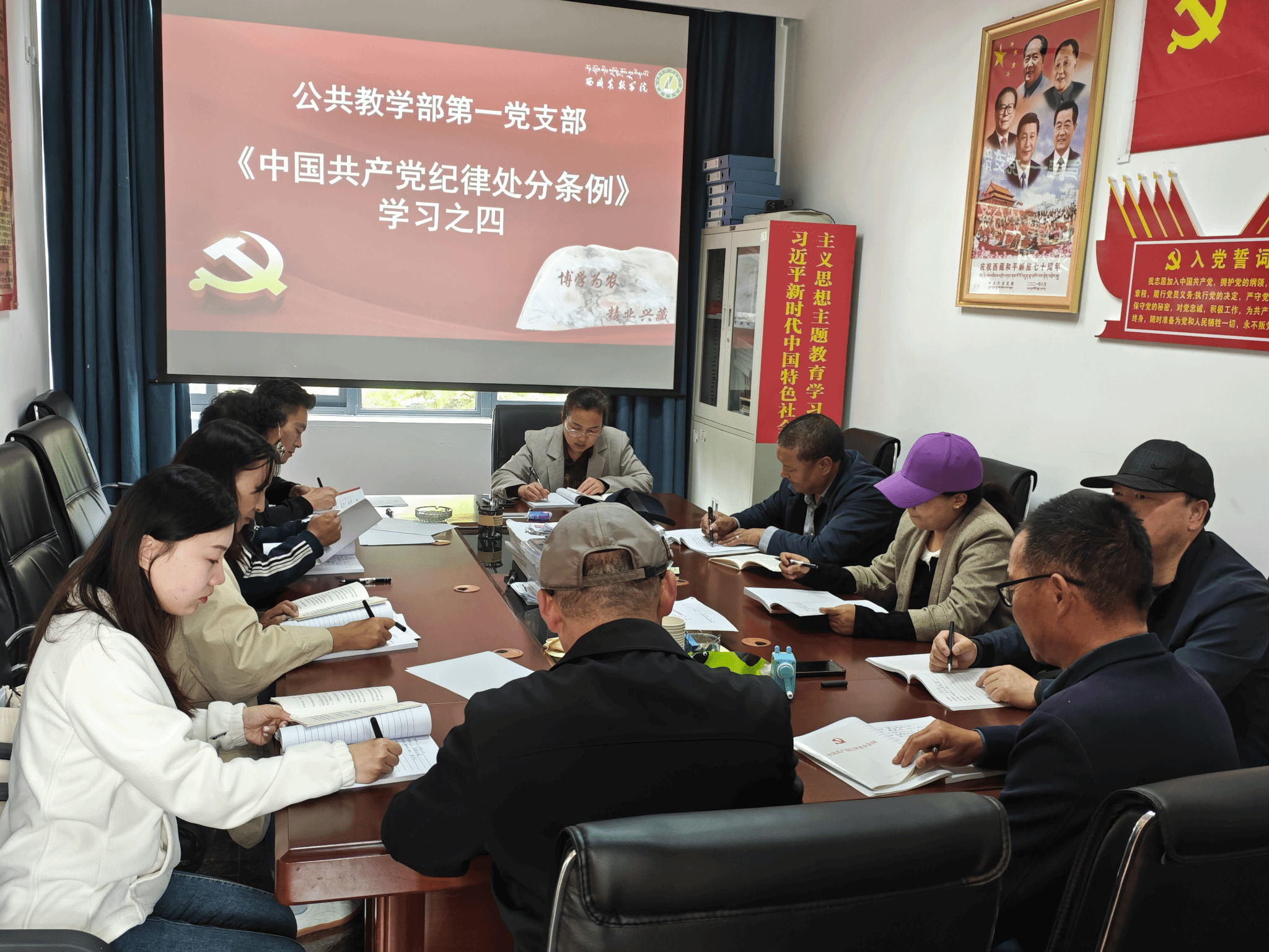 学习会上支部副书记桑旦多吉同志带领全体党员逐条逐句地领学了《中国共产党纪律处分条例》中的“第七章对违反组织纪律行为的处分”。刘秀丽同志强调,全体党员要通过今天的学习,将《条例》学地入脑入心,在以后各项档案资料填写,参加老乡会、校友会等活动,在职务职级晋升、职称评审,出国出境等各项事务中,必须做到知纪、明纪、守纪,严明政治纪律和政治规矩,将党纪学习内化于心、外化于形。