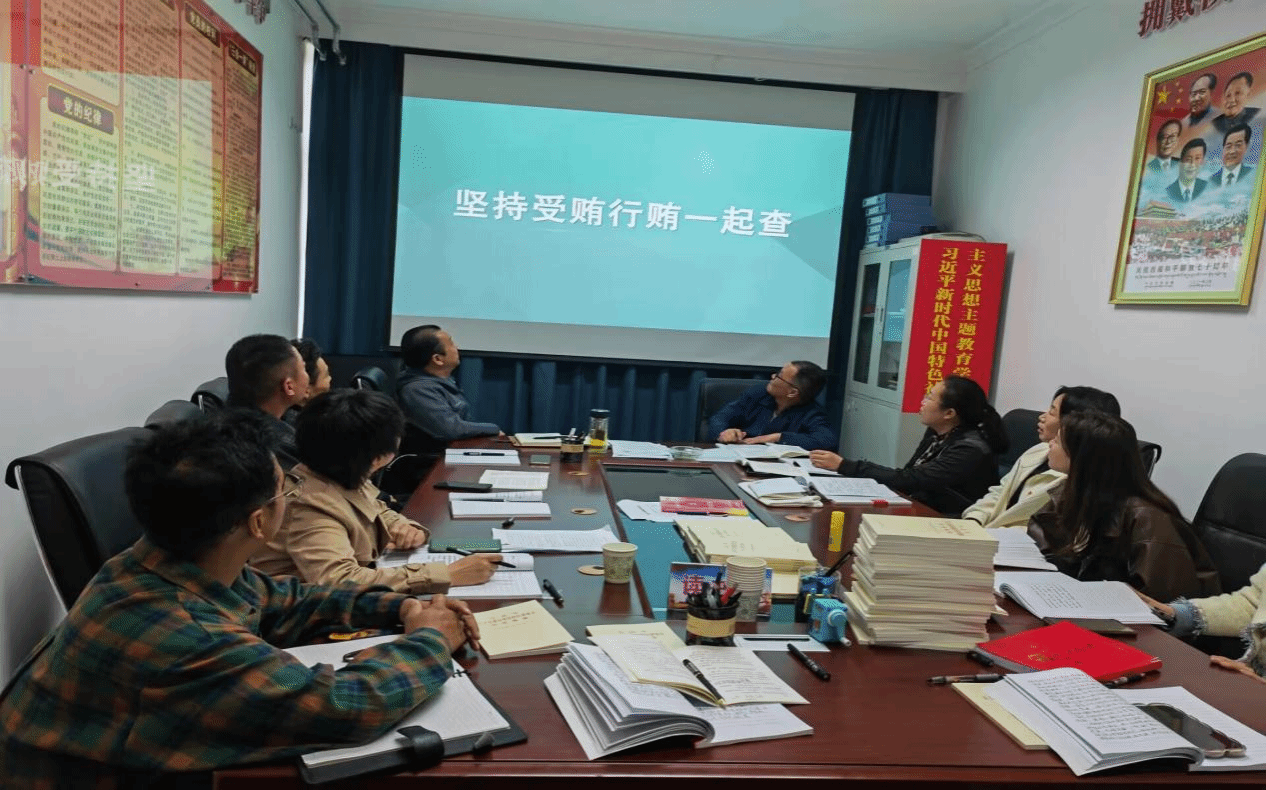 其次开展了党纪学习教育读书班读书活动,由杨玉田主任带领大家领学了由杨玉田主任领学《中国共产党纪律处分条例》第二编分则第八章对违反廉洁纪律行为的处分的内容。衡思泉书记领学《中国共产党纪律处分条例》第二编分则第九章对违反群众纪律行为的处分的内容。班子成员围绕党纪学习开展交流研讨,衡思泉书记以“严守党纪规矩、筑牢廉洁防线”为题、杨玉田以“严明党的生活纪律 锤炼道德品行”为题做交流研讨发言。