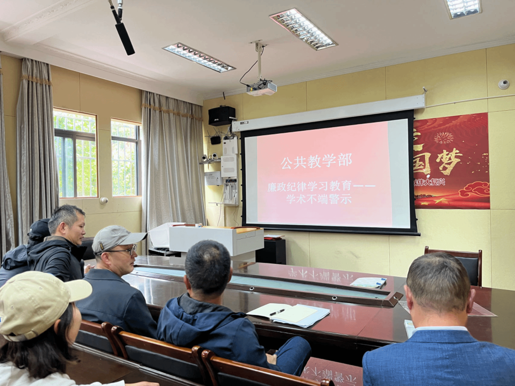为扎实推进公共教学部廉政纪律建设,增强教师踏实做事,诚实做人意识,结合当前党纪学习教育,7月4日下午公共教学部开展了廉政纪律引领科研诚信主题教育活动。