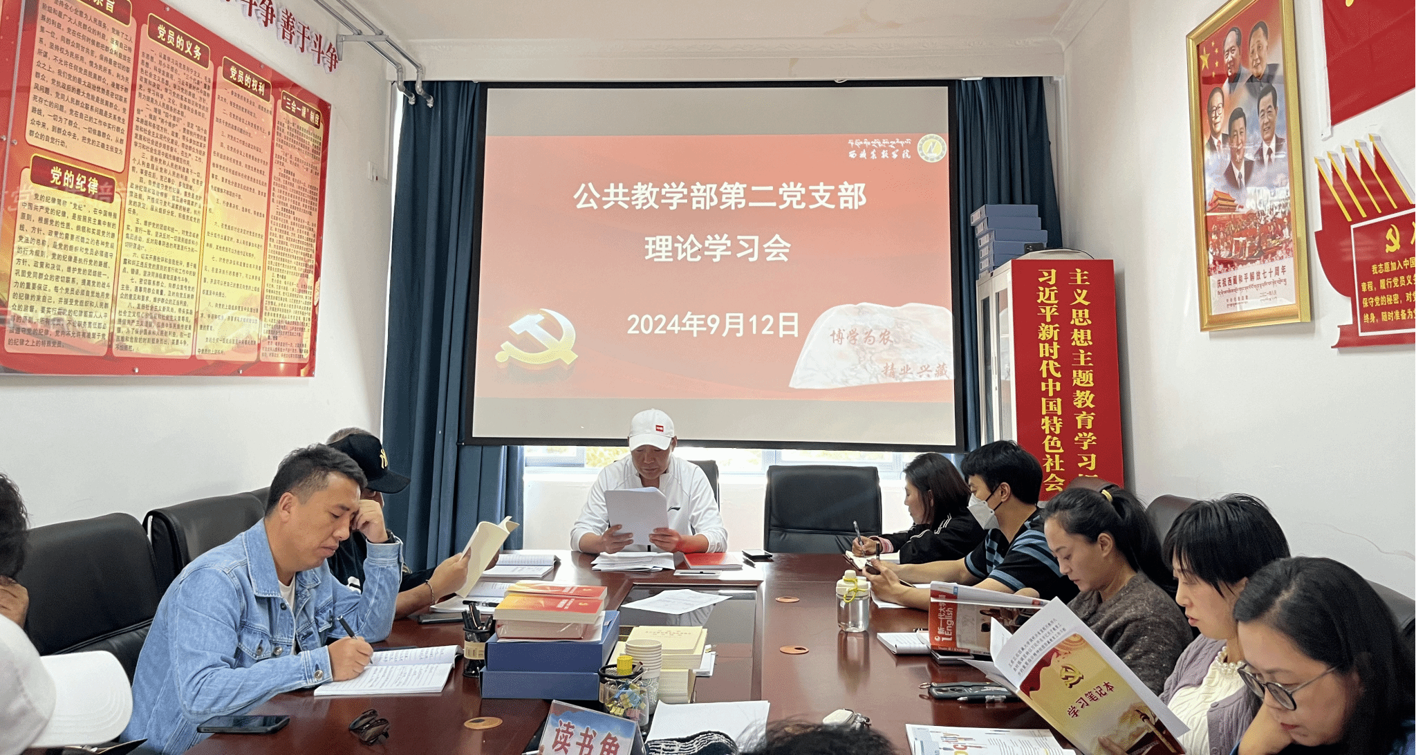 为进一步加强党员教师理论素养,提升政治理论水平,公共教学部第二党支部于 9月12日下午,在党员活动室召开理论学习会,专题学习习近平总书记在全国教育大会上的重要讲话精神和王君正书记在西藏大学调研时的讲话精神。会议由支部书记刘西锋同志主持,支部全体党员参加了学习会。